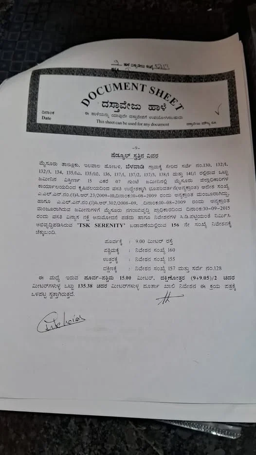 A 30x50 east-facing site is available for sale in TSK Serenity, Belawadi, Vijaynagar 4th stage, Mysore. The asking price is 61 lakh.