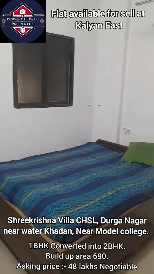 A 1BHK flat converted into 2BHK is available for sale in Shreekrishna Villa CHSL, Durga Nagar, near Water Khadan and Model College. The original kitchen has been converted into a b...