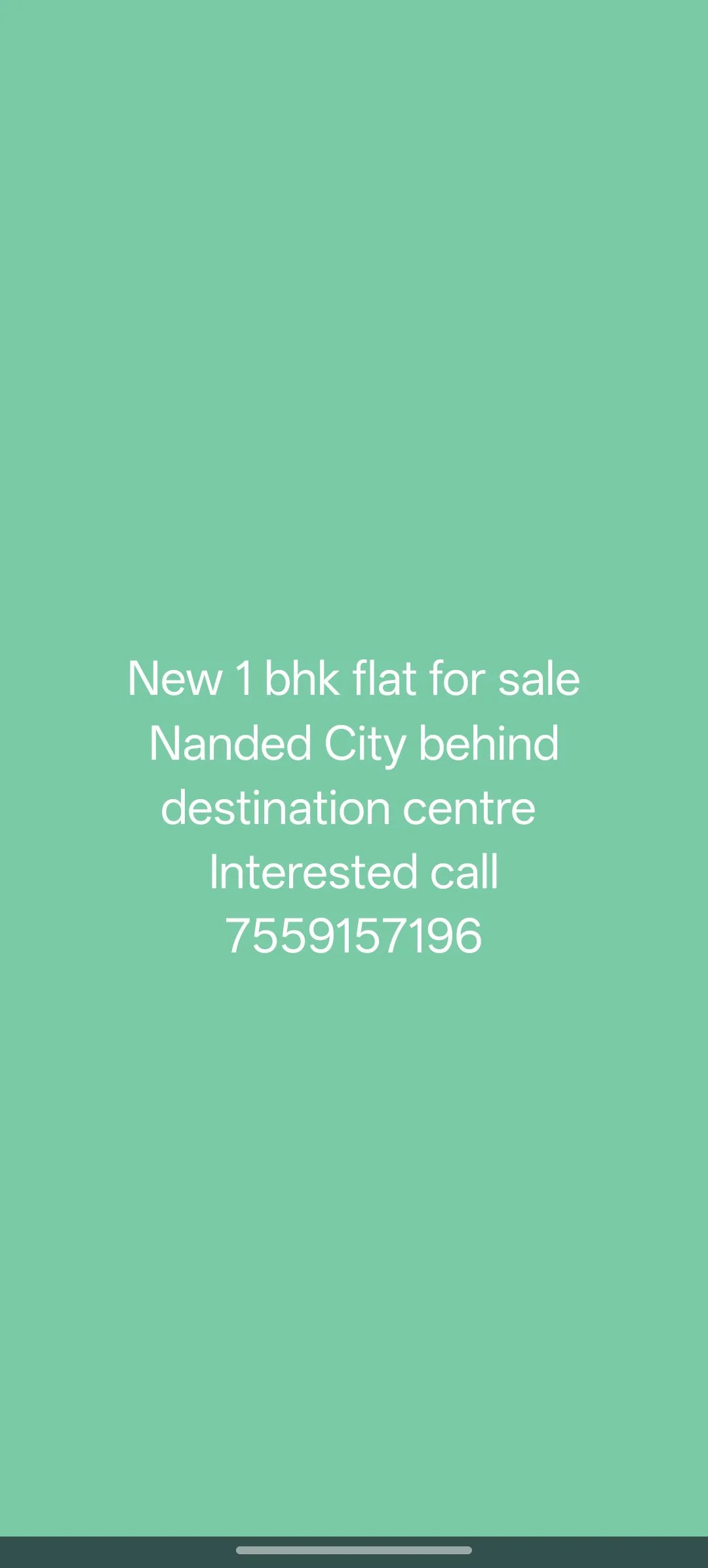 This is a listing for a new 1 BHK flat for sale in Nanded City, behind Destination Centre in Pune, Maharashtra. The price is ₹40.