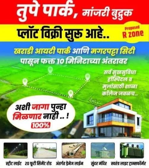 Residential plots are available for sale at Tupe Park, Manjari Budruk, a rapidly developing "Proposed R Zone" area. The location offers connectivity to Pune’s tech and business hub...