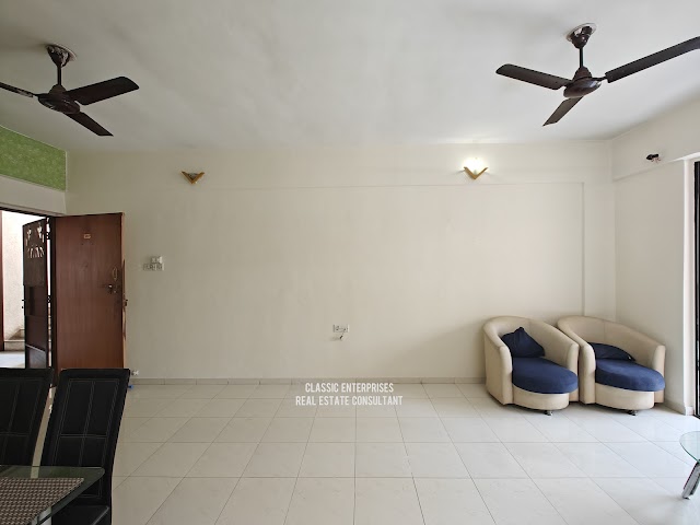 This is a resale 2 BHK flat in Viman Nagar, specifically in Viman Jewel. The property has a built-up area of approximately 1100 sq ft and is located on the top floor with an east-w...
