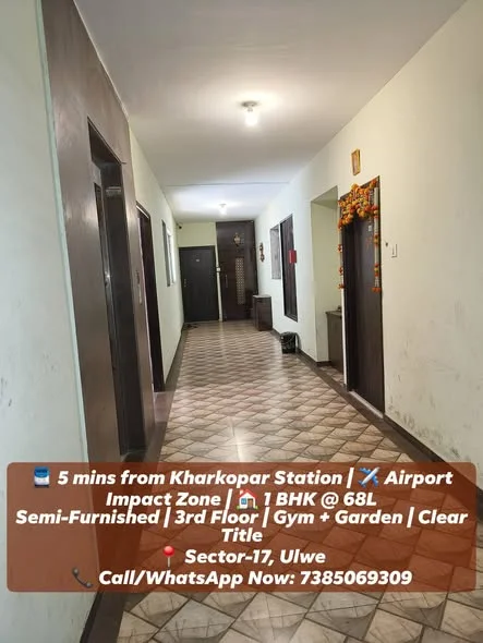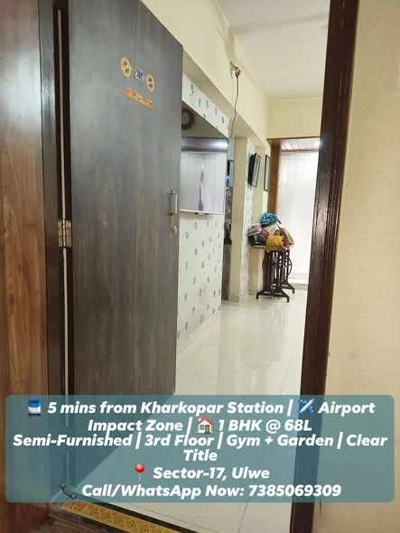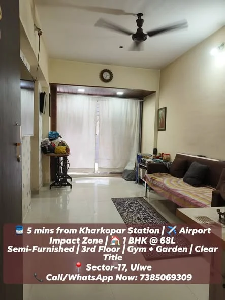 A semi-furnished 1 BHK flat is available for sale in Om Aarish CHS, Sector-17, Ulwe. The flat has a built-up area of 695 sq.ft and a carpet area of 430 sq.ft. It is located on the ...