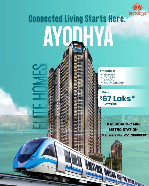 This real estate listing promotes homes in Ayodhya, highlighting the modern lifestyle and connectivity. The location offers proximity to Kashigaon Metro Station (7 minutes away). T...