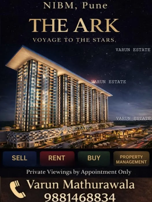 This real estate listing advertises 'The Ark,' a residential property at NIBM, Pune, offering a high standard of living with skyline views and a forest backdrop. The property boast...