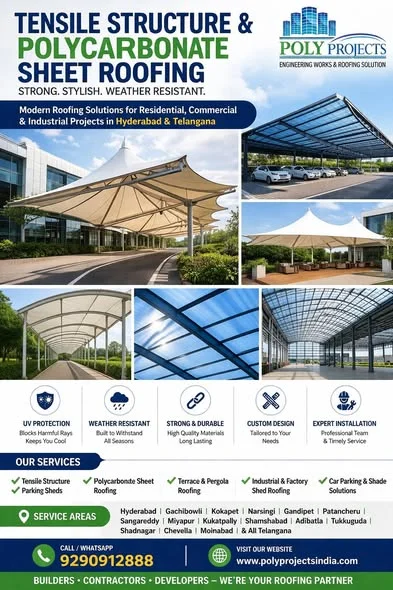 Poly Projects offers tensile structures and polycarbonate roofing solutions in Hyderabad and Telangana. They provide services for residential, commercial, and industrial projects, ...