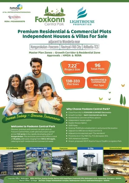 Premium plots and independent houses are available for sale in Adibatla, located inside the Outer Ring Road (ORR). The HMDA and RERA approved layout offers ready-to-build plots wit...