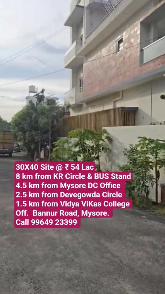 This advertisement promotes new project sites on Bannur Road. East-facing 30x40 sites are priced at ₹55.25 Lac, while west-facing 30x40 sites are available for ₹54 Lac. The locatio...