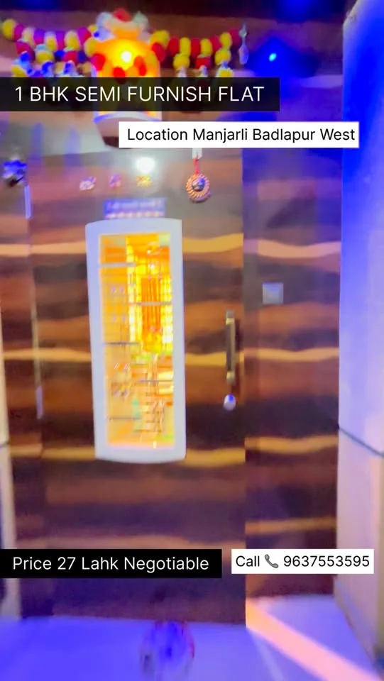 This is a 1BHK semi-furnished flat for sale in Shaswat Park Phase 1, Manjarli, Badlapur (West). The flat is located on the 5th floor of a 7-story building with a lift. Parking is a...