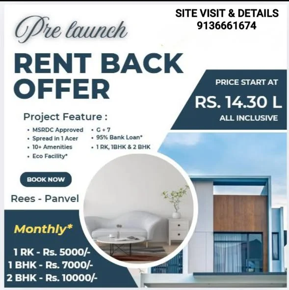 This real estate listing advertises 1RK, 1BHK, and 2BHK apartments in Panvel near ICICI Bank. The G+7 story tower is located close to schools, colleges, markets, a petrol pump, and...