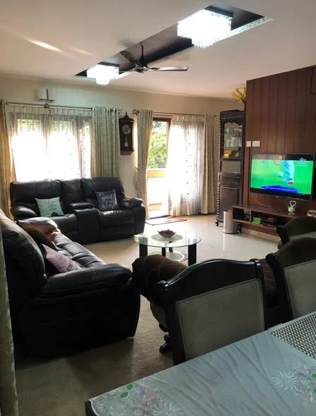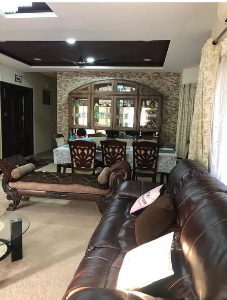 This is a recently built, fully furnished 4 BHK duplex apartment with a modern design. The apartment has an area of 3000sft and features 2 living halls on separate floors, 2 kitche...