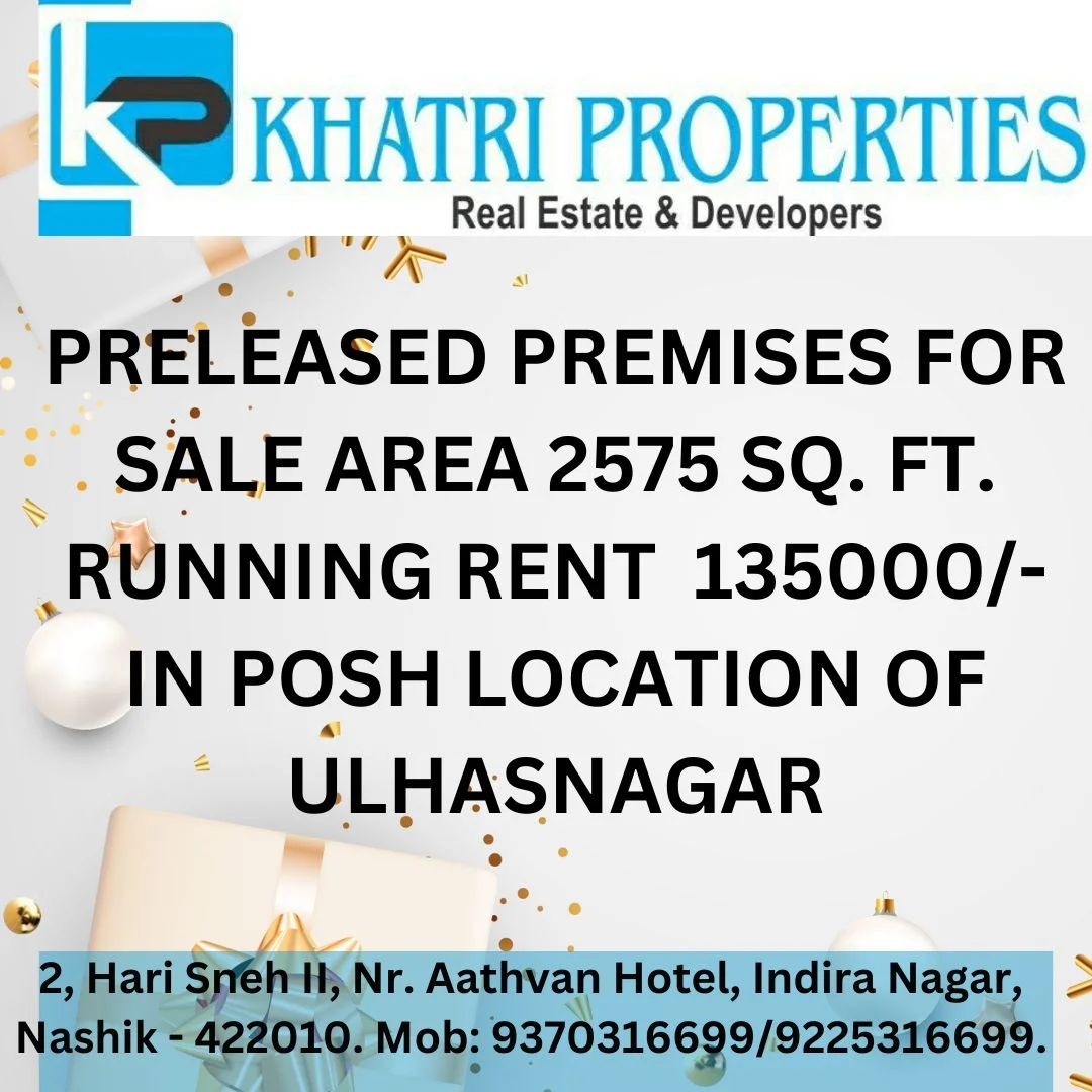 A preleased commercial space is available for sale in a posh location of Ulhasnagar. The property has a saleable area of 2575 sq ft and is currently generating a monthly rental inc...