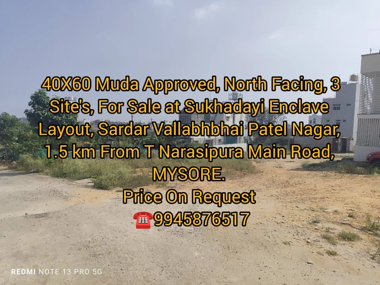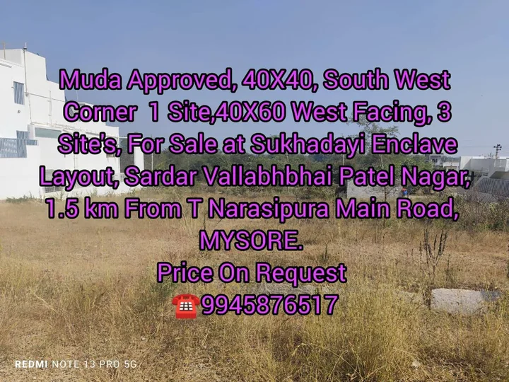 The advertisement promotes 40X60 MUDA-approved sites for sale in Sukhadayi Enclave and Sukhadayi Woods Layout, located in Sardar Vallabhbhai Patel Nagar, Mysore, approximately 1.5 ...