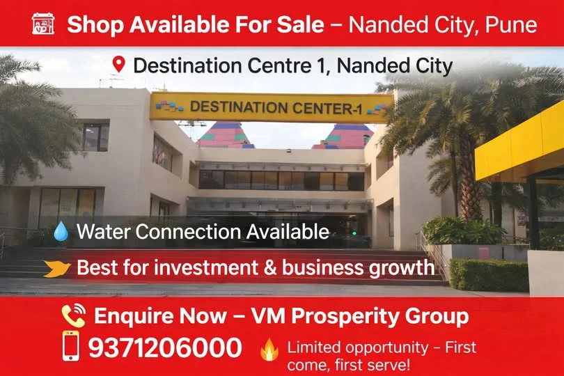 This is an advertisement for prime shop opportunities in Nanded City, Pune. It highlights a high footfall location ideal for business growth and investment. The shops are suitable ...