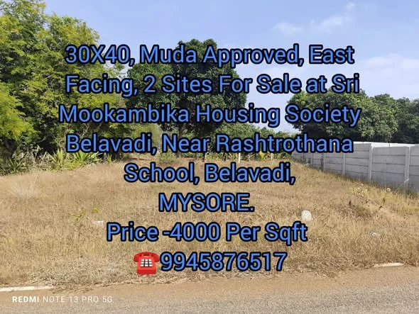 Two 30X40 sites are available for sale in Sri Mookambika Housing Society, Belavadi, near Rashtrothana School, Mysore. The sites are MUDA approved and east-facing. The price is 4000...
