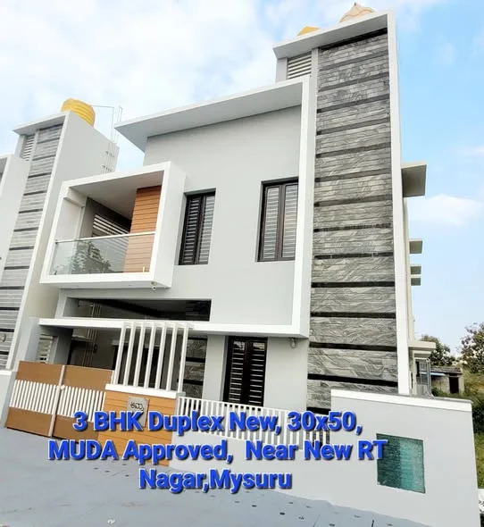 A new three-bedroom duplex house is available for sale in New RT Nagara, Mysuru. The property is a 30x50 site with a north-facing door and west-facing orientation. It is MUDA appro...