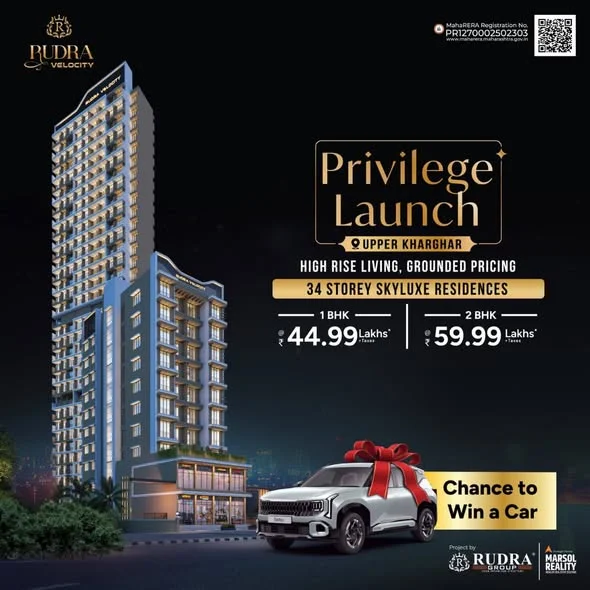 Rudra Velocity – The Presidency offers premium living with a blend of style, comfort, and investment potential in Upper Kharghar. Tower 1 (G+34) features 1BHK and 2BHK apartments w...
