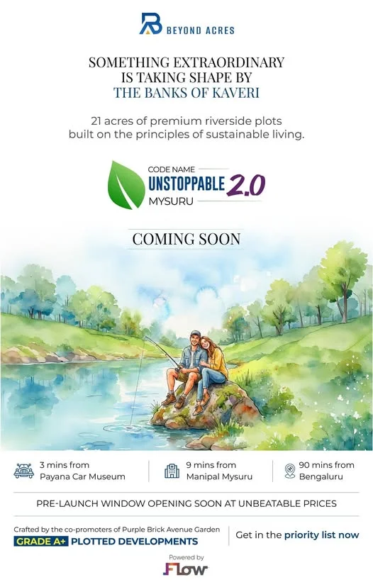 This is an advertisement for Unstoppable 2.0, a plotted development by the banks of Kaveri with access to the Bangalore–Mysore Expressway. It is presented as a smart investment opp...
