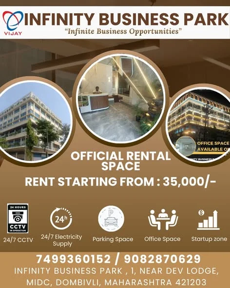 Infinity Business Park in MIDC Dombivli offers premium commercial office spaces suitable for startups, clinics, professionals, and corporate offices. The well-designed office space...