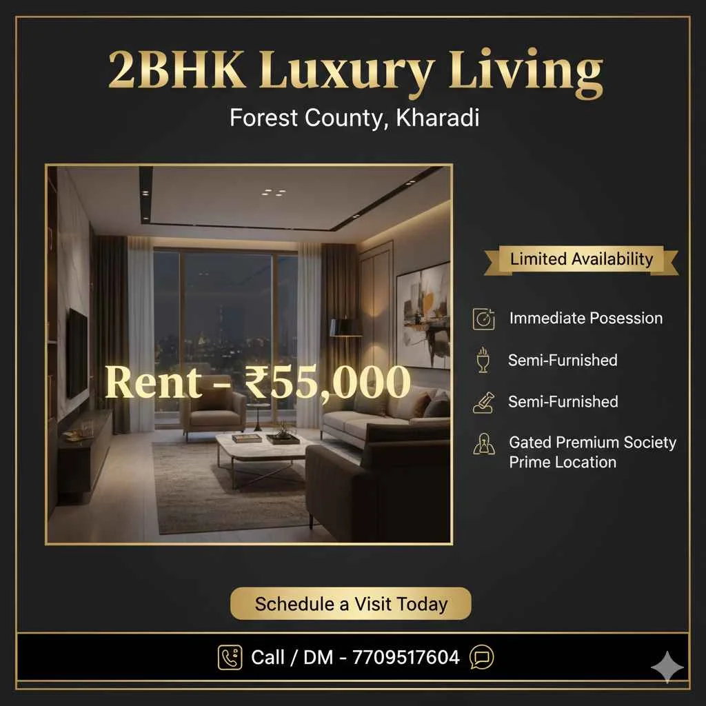 This is a rental listing for a spacious 2 BHK apartment in Forest County, Kharadi, Pune. The apartment is available for immediate possession and is located in a premium gated socie...