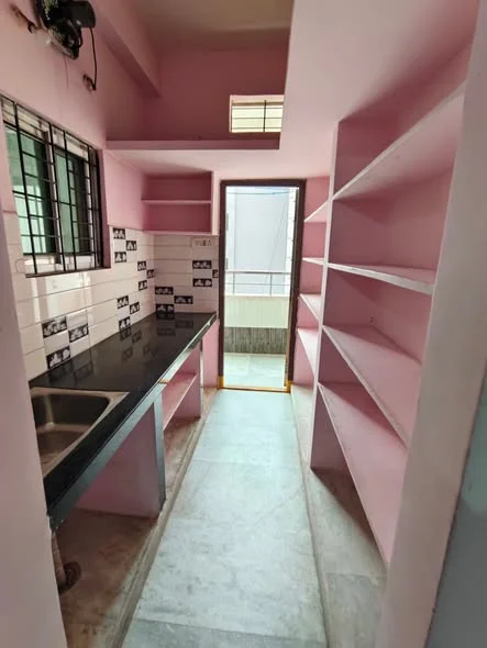 A semi-furnished 1BHK flat is available for rent in Kondapur. The brand-new flat is ready to move in and is located near the main road. Amenities include geysers, fans, lights, cup...