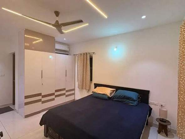 A semi-furnished mega master bedroom is available for rent in a 3BHK flat at Prestige Tranquil, Kokapet, Hyderabad. It is suitable for male bachelors, couples, or families. The fla...