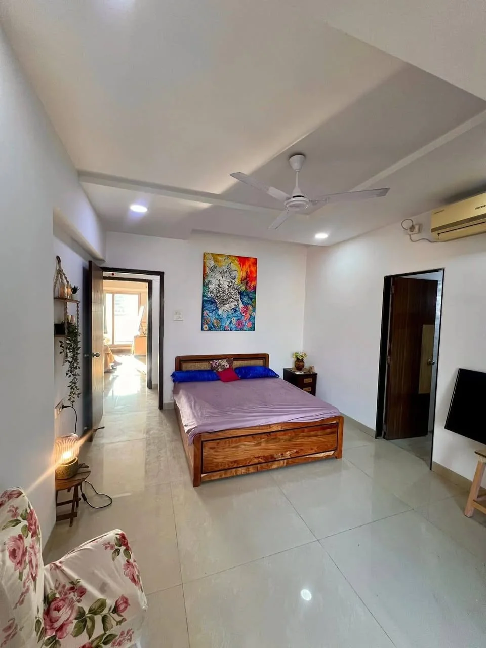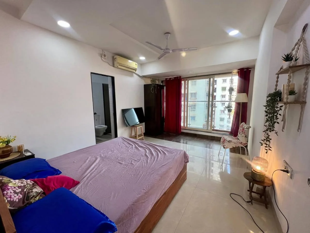 A spacious master bedroom in a 3 BHK high-rise flat is available for a female flatmate. The room offers single occupancy with an attached personal balcony deck and washroom. The fu...