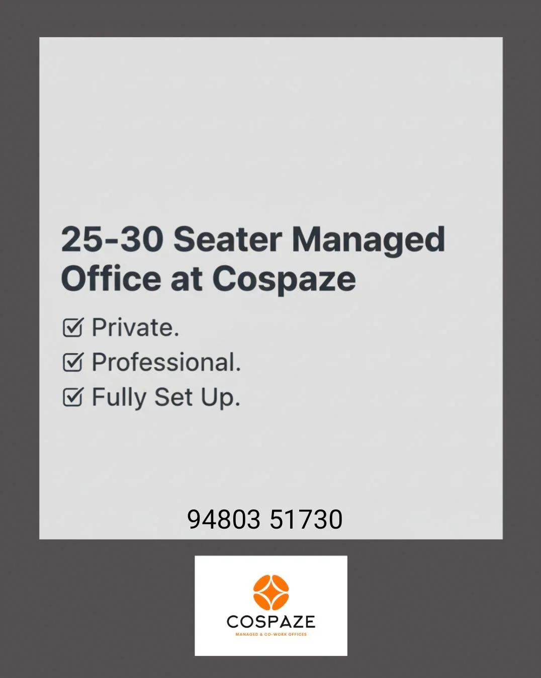 A fully managed workspace is available at Cospaze, North Bangalore, suitable for a team of 25–30 people. The office is fully equipped and tech-enabled, featuring workstations, mana...
