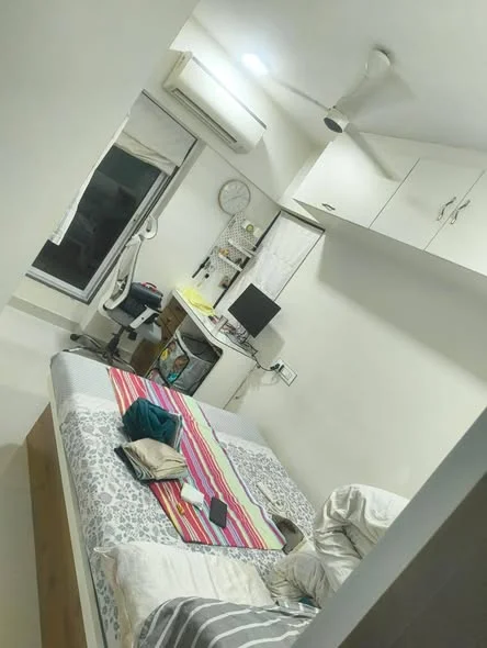 This is a rental listing for a fully furnished 2 BHK apartment in Goregaon East, specifically in Gokuldham. The apartment is equipped with AC, a bed, and a wardrobe in the rooms. T...