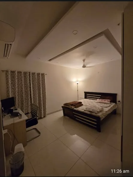 A semi-master bedroom in a fully furnished 3BHK flat is available for rent at Prestige Tranquil, Kokapet, Hyderabad. The flat is located on Golden Mile Road, near IT and business h...