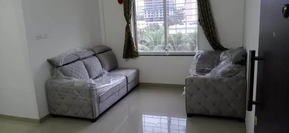 This is a premium semi-furnished 2BHK flat for rent in Sukhwani Skylines, Wakad. It features high-end modular fittings and a clean, modern aesthetic. The flat is ready-to-move-in.