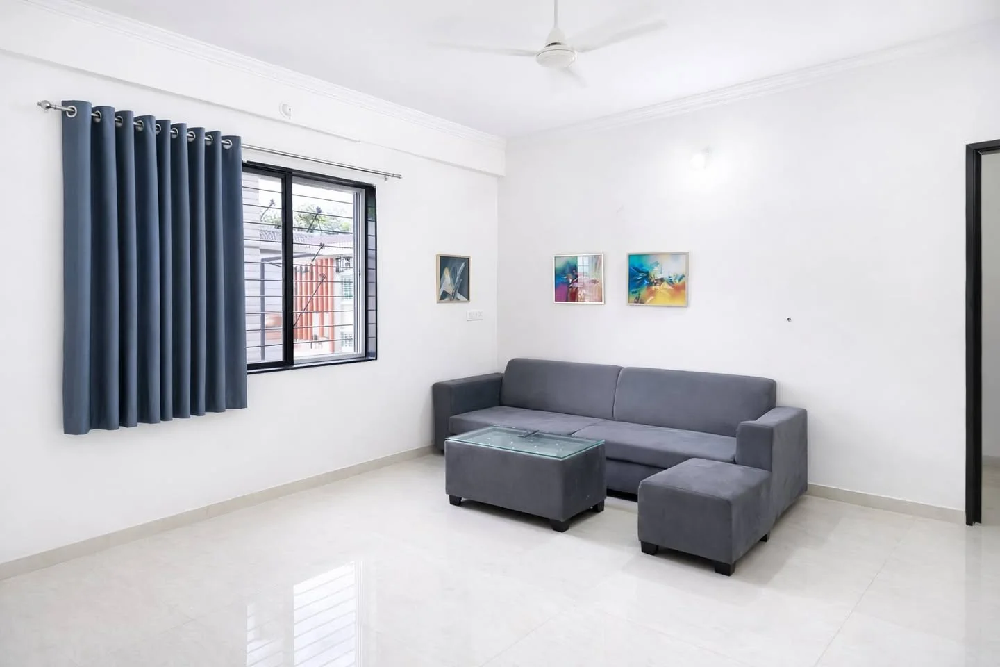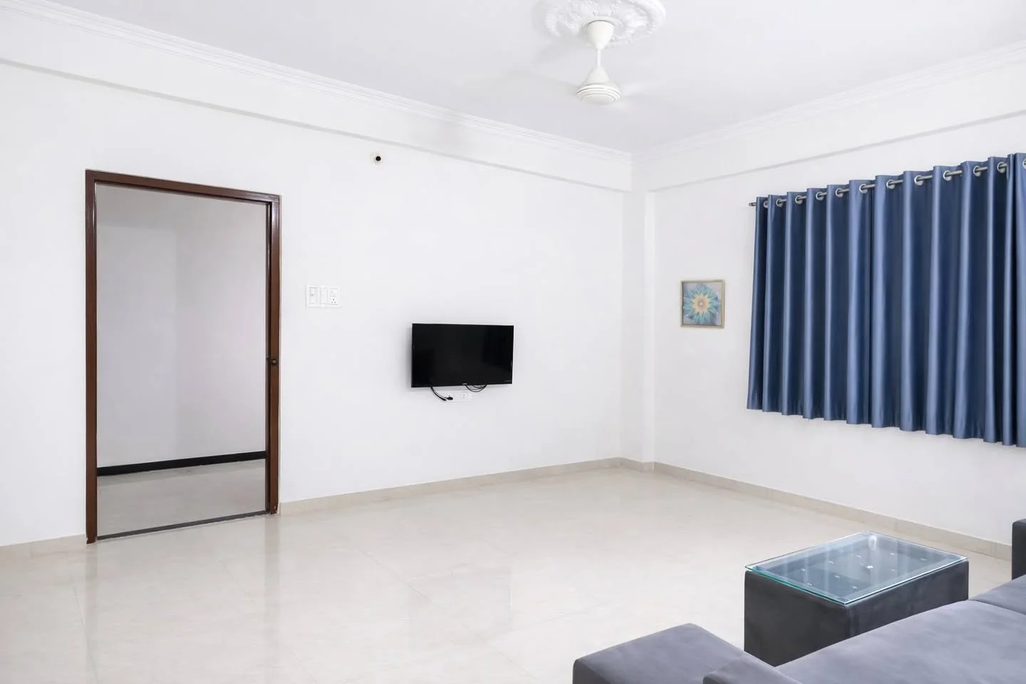 A fully furnished, spacious 1BHK flat is available for rent in a location close to Viman Nagar and Kharadi. The flat is available starting May 1st. The monthly rent is ₹23,000.