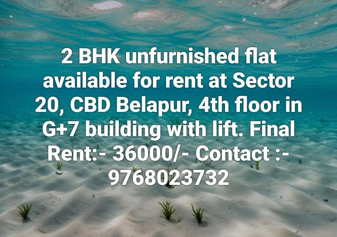 This is an ad for a 2 BHK unfurnished flat available for rent in Sector 20, CBD Belapur. The flat is located on the 4th floor of a G+7 building with a lift. The final rent for the ...