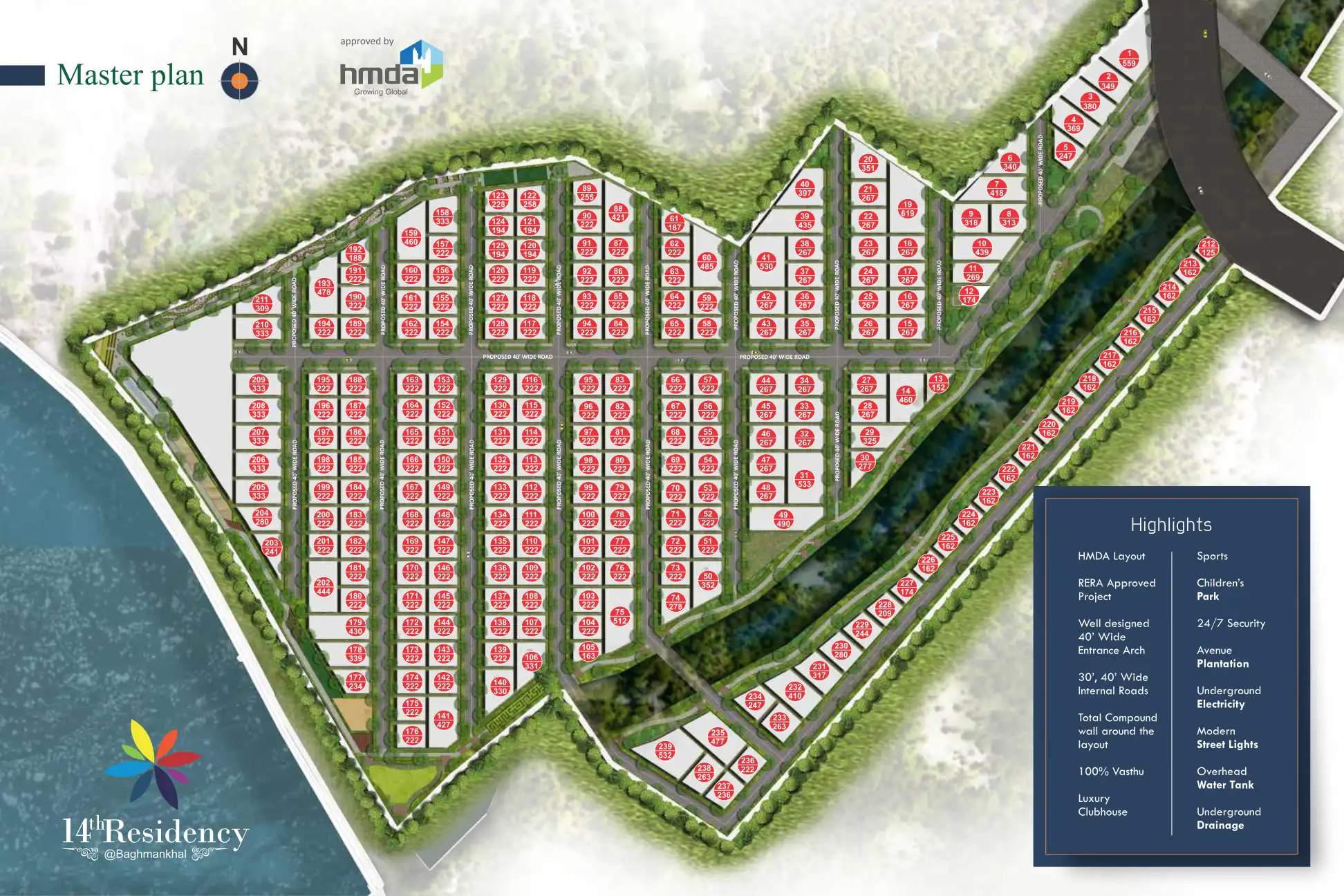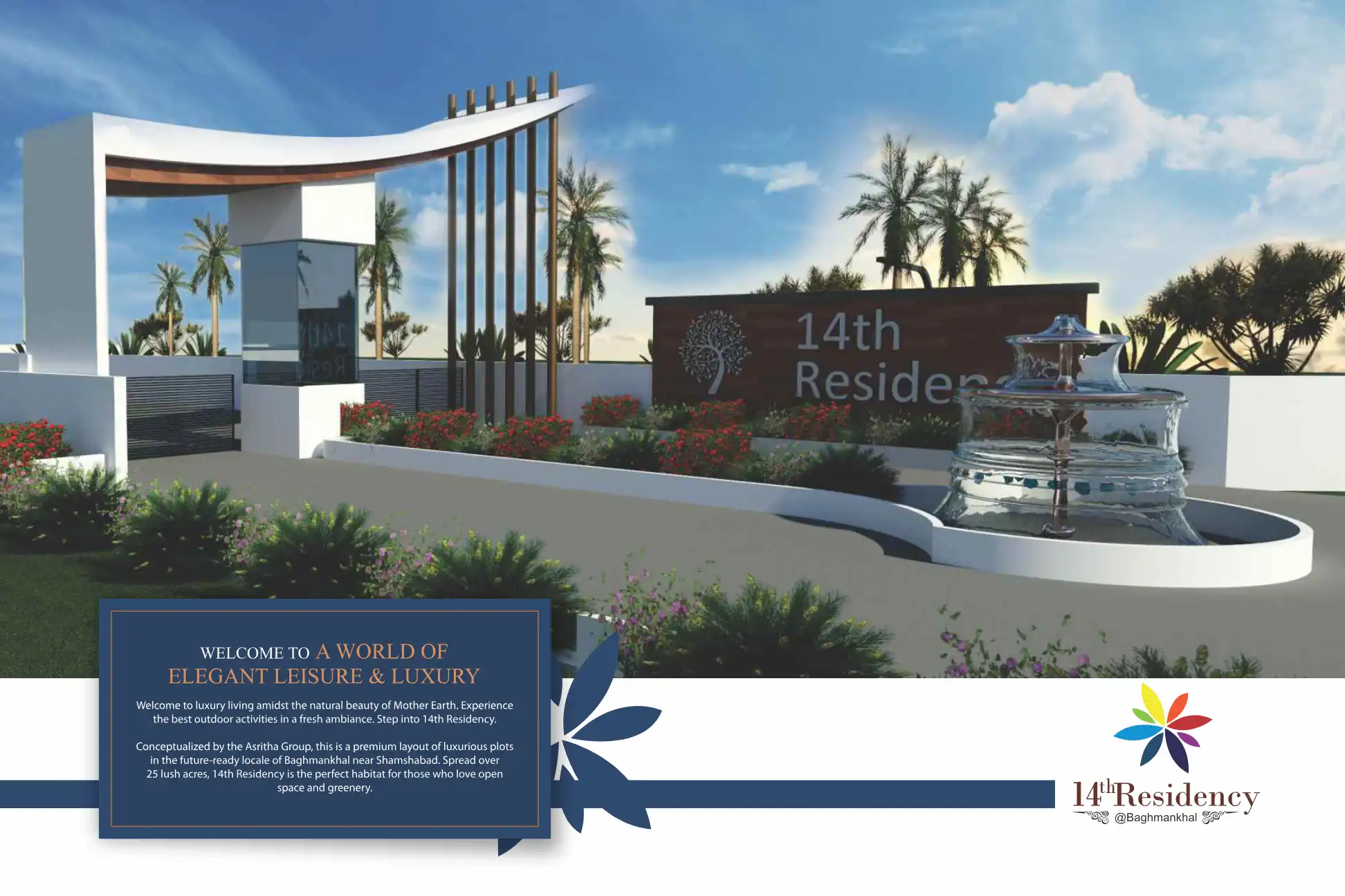 Conceptualized by the Asritha Group, this is a premium layout of luxurious plots in the future-ready locale of Baghmankhal near Shamshabad. Spread over 25 lush acres, 14th Residency is the perfect habitat for those who love open space and greenery.