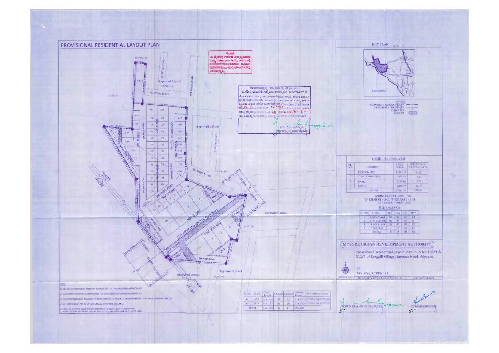 Provisional Residential Layout Plan In Sy No 105/3 & 211/4 of Kergalli Village, Jaypura Hobli, Mysore.