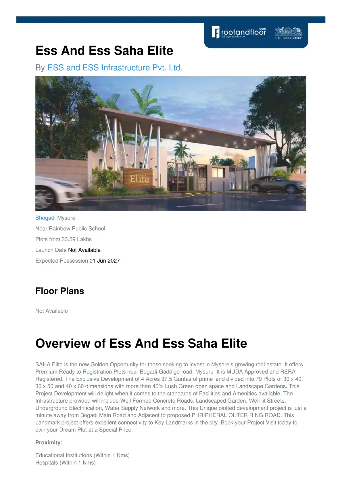 SAHA Elite is the new Golden Opportunity for those seeking to invest in Mysore's growing real estate. It offers Premium Ready to Registration Plots near Bogadi-Gaddige road, Mysuru. It is MUDA Approved and RERA Registered. The Exclusive Development o...
