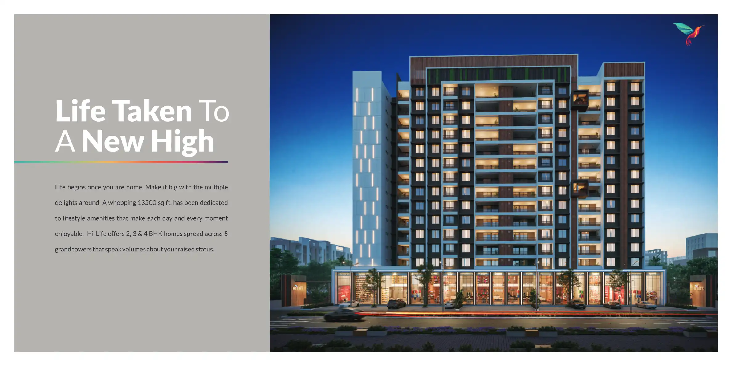 Hi-Life offers 2, 3 & 4 BHK homes spread across 5 grand towers that speak volumes about your raised status.
