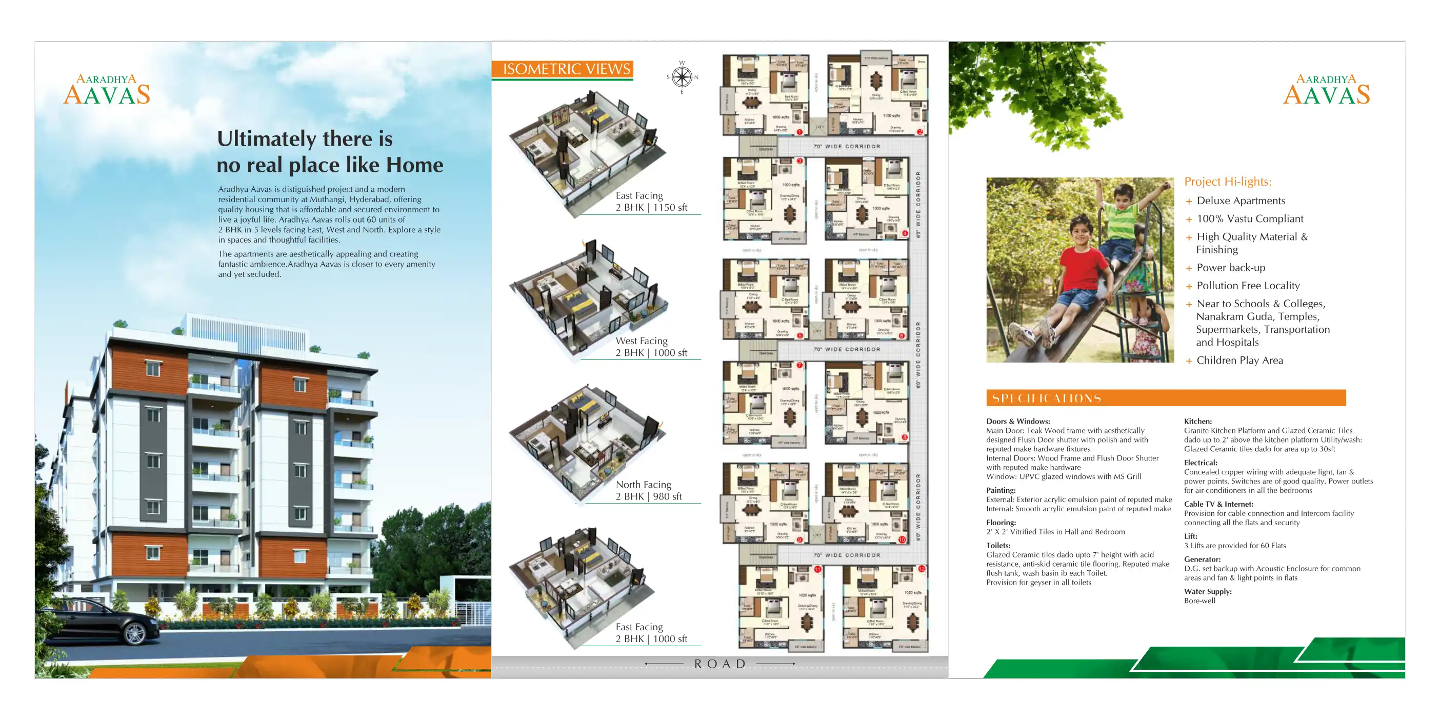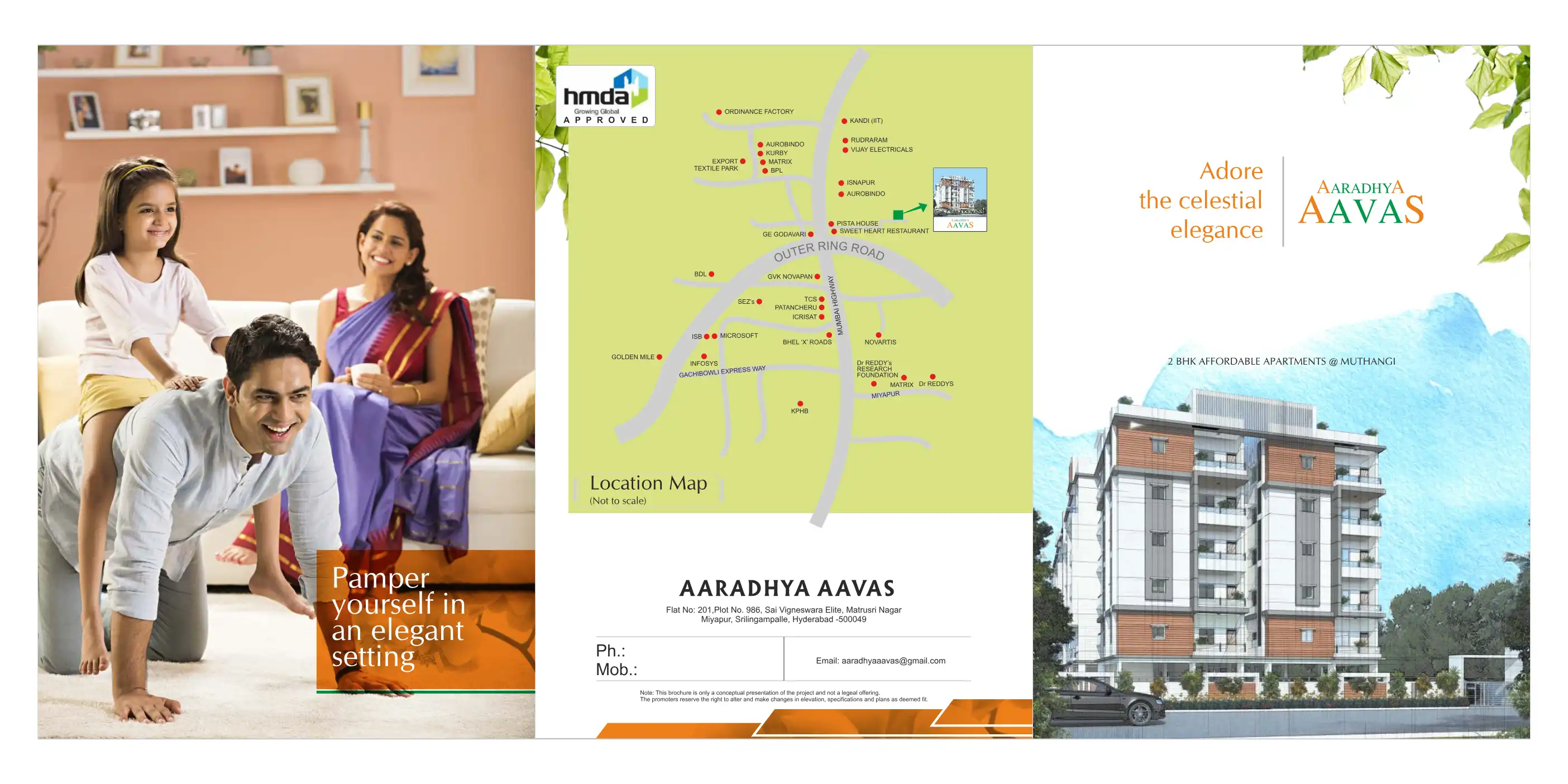 Aradhya Aavas is distiguished project and a modern residential community at Muthangi, Hyderabad, offering quality housing that is affordable and secured environment to live a joyful life. Aradhya Aavas rolls out 60 units of 2 BHK in 5 levels facing E...