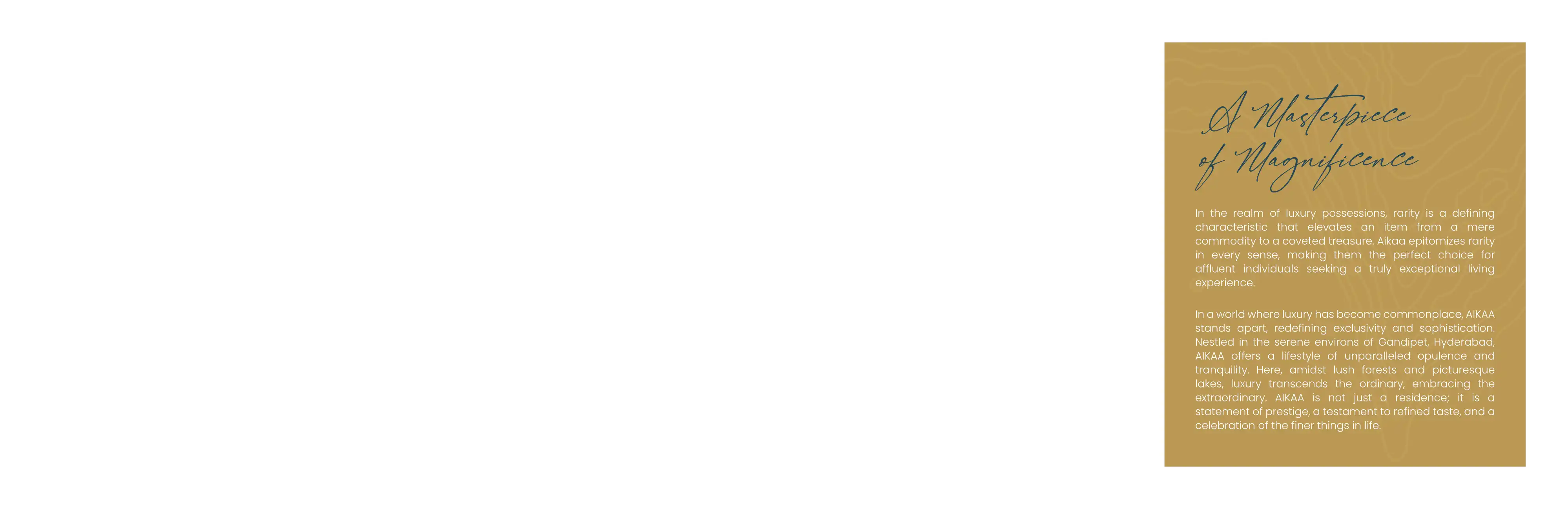 An exclusive collection of 146 Villas, each a composition of architectural brilliance, AIKAA is a composition of meticulously crafted luxury residences, blending grandeur with intimate refinement, embodying the rarity in every way - location, archite...