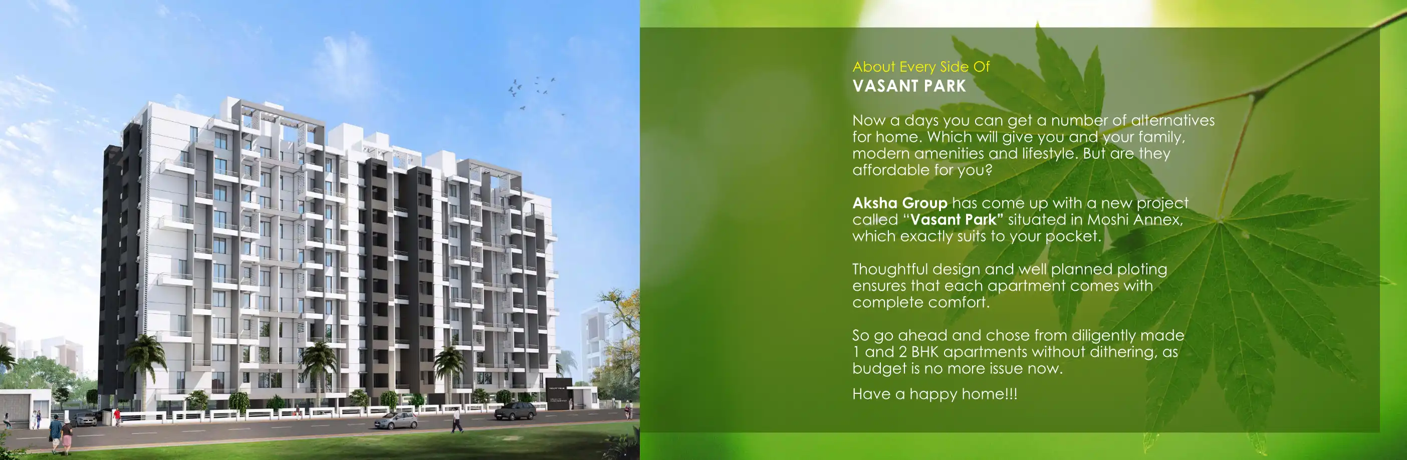 Aksha Group has come up with a new project called "Vasant Park” situated in Moshi Annex, which exactly suits to your pocket.
