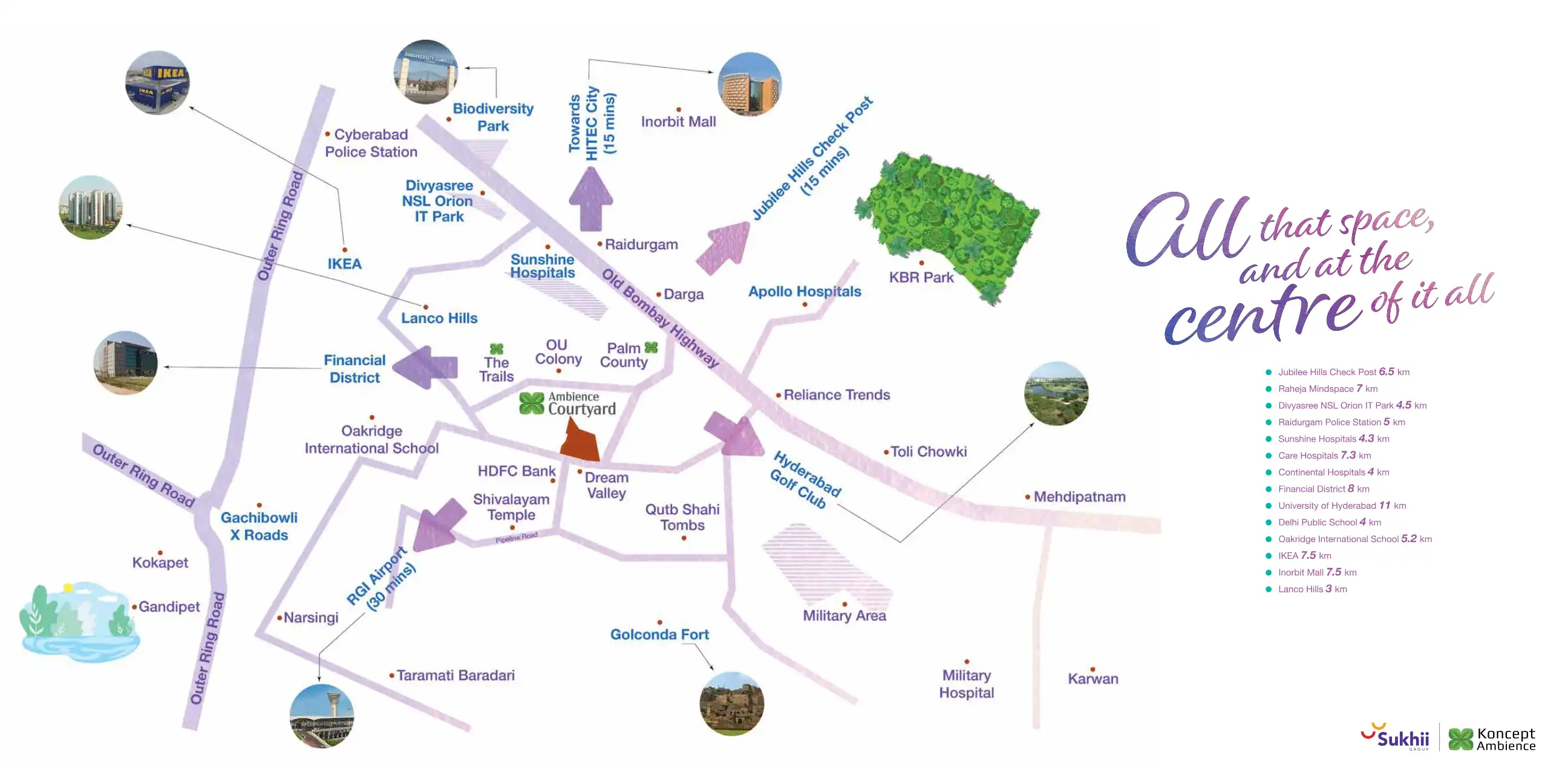 Sprawled across 8 acres in Manikonda, Ambience Courtyard gives you the luxuries of a complete premium residential property over 8 blocks, in an environment that's open, green, and equipped with all the luxuries and facilities you can possibly need. 7...
