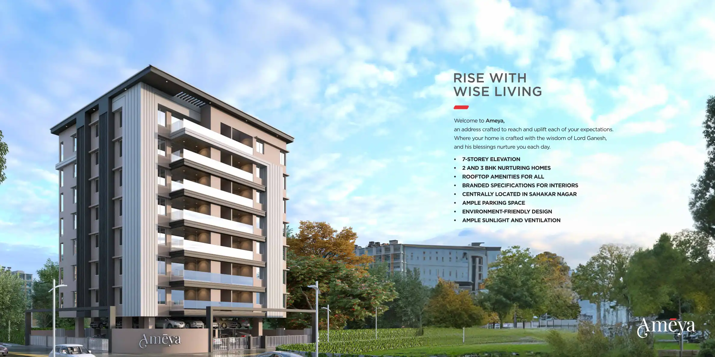 Welcome to Ameya, an address crafted to reach and uplift each of your expectations. Where your home is crafted with the wisdom of Lord Ganesh, and his blessings nurture you each day.