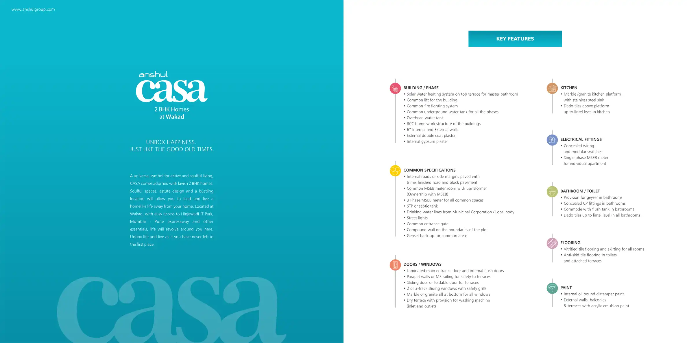 A universal symbol for active and soulful living, CASA comes adorned with lavish 2 BHK homes. Soulful spaces, astute design and a bustling location will allow you to lead and live a homelike life away from your home. Located at Wakad, with easy acces...