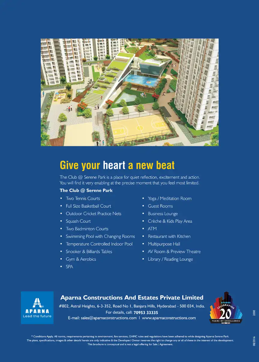 Aparna Serene Park @ Kondapur is perfectly designed to help you remove yourself from the world for a while in order to heal and deal with what is happening and think through what to do about it.