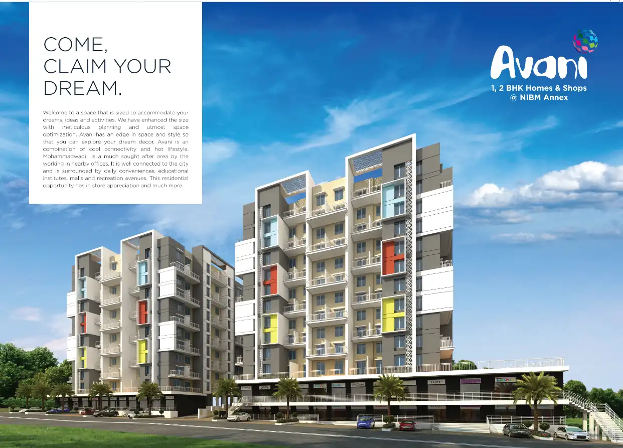 Avani is a residential project offering 1 and 2 BHK homes and shops located in NIBM Annex, Mohammadwadi. The project aims to provide smart, budget-friendly luxury apartments with a modern take on urban living.