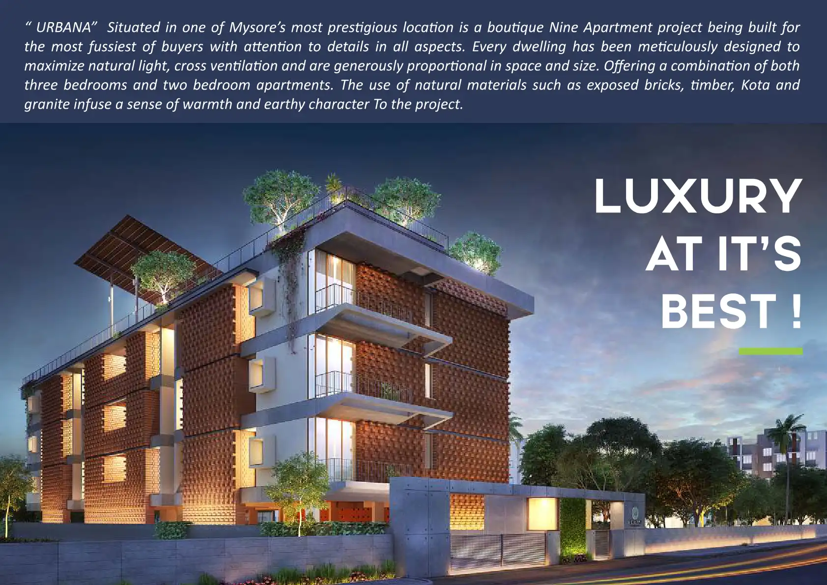 URBANA” Situated in one of Mysore's most prestigious location is a boutique Nine Apartment project being built for the most fussiest of buyers with attention to details in all aspects. Every dwelling has been meticulously designed to maximize natural...