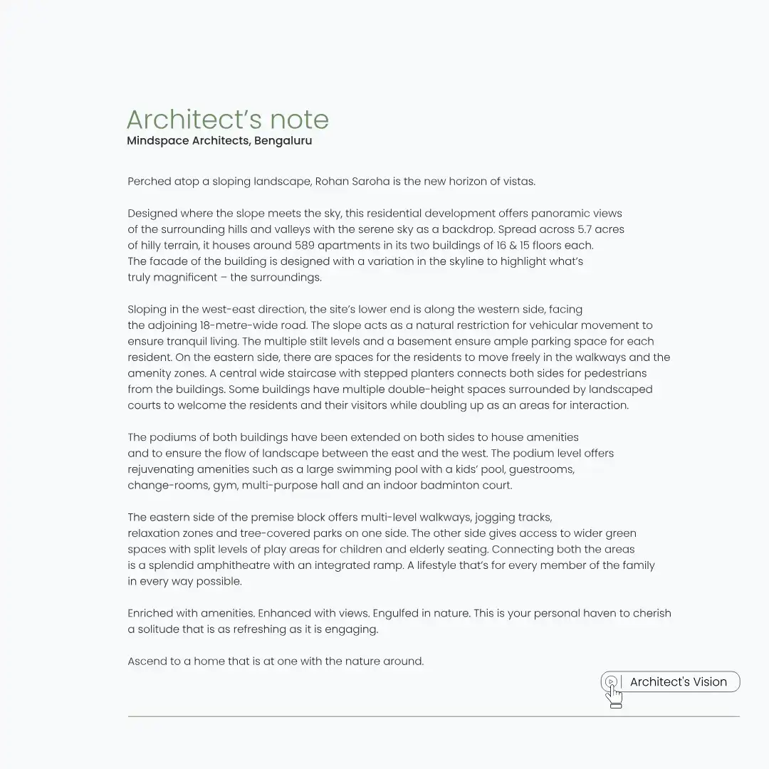 Rohan Saroha is a residential development offering panoramic views of the surrounding hills and valleys. It houses around 589 apartments in two buildings of 16 & 15 floors each.