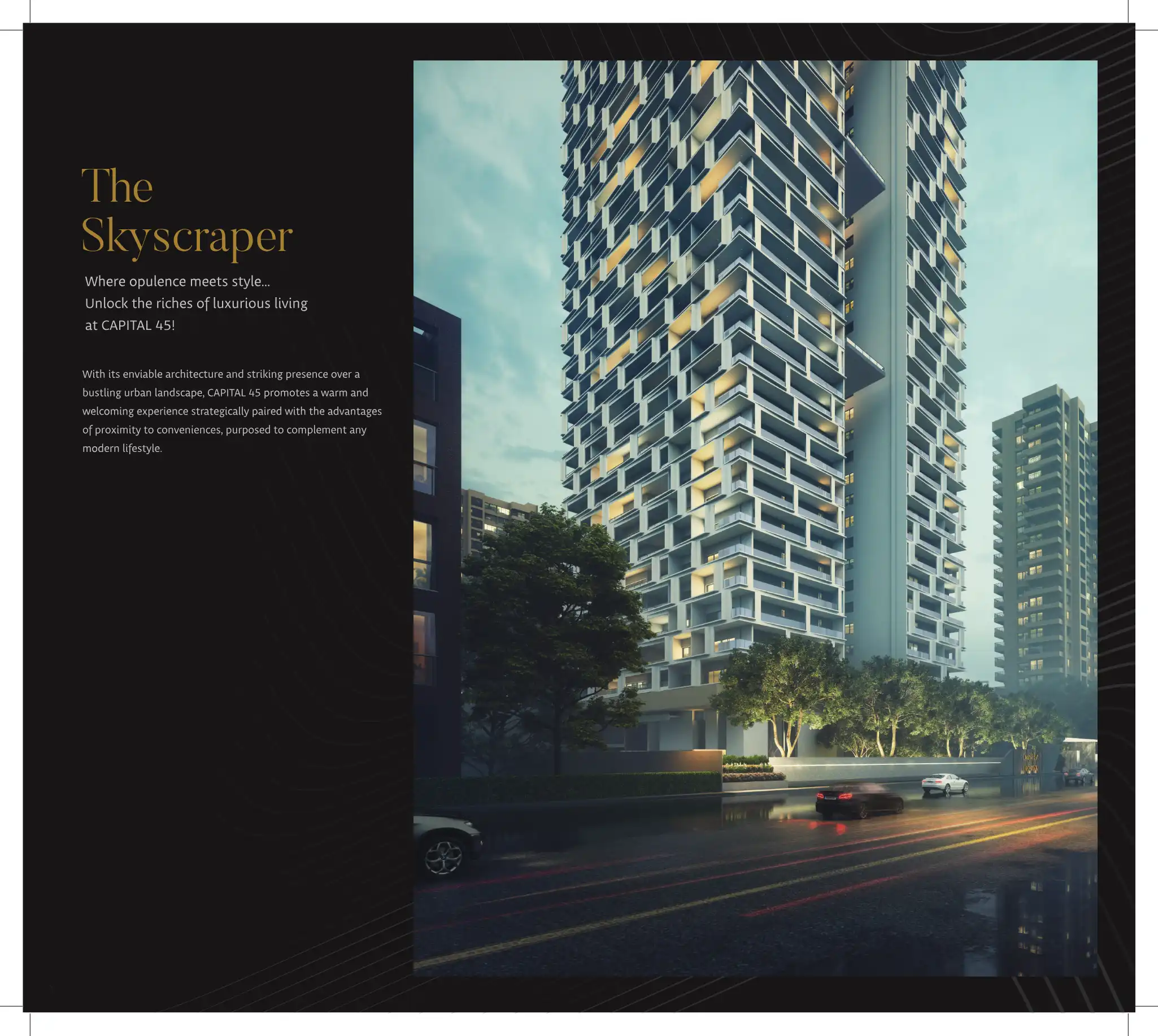 Unlock the riches of luxurious living at CAPITAL 45! With its enviable architecture and striking presence over a bustling urban landscape, CAPITAL 45 promotes a warm and welcoming experience strategically paired with the advantages of proximity to co...
