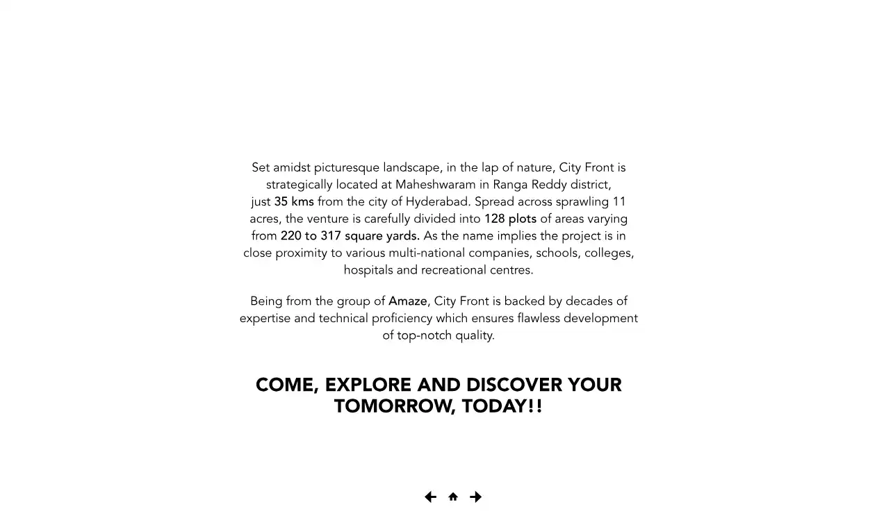 City Front is exactly located in Masanpally Village, Maheshwaram Mandal in Ranga Reddy district. Being surrounded by several communities, the neighbourhood is fast developing as the preferred destination for quality living. In simple terms, it's an i...