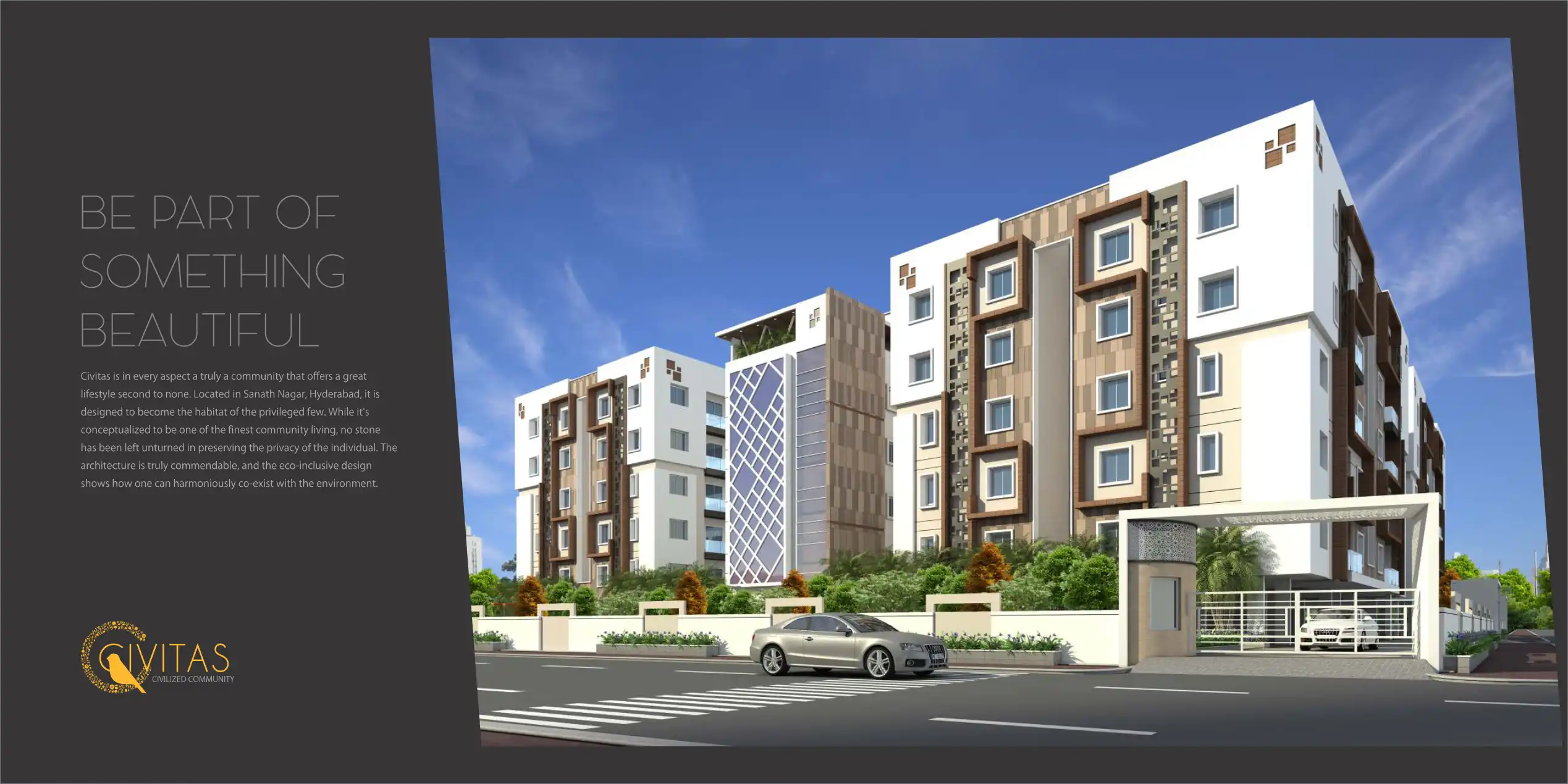 A world full of practical luxury, elegant surroundings, spacious living and a life full of comfort for you and your family awaits at Saanvee's Civitas, a gated community at Sanath Nagar, Hyderabad.