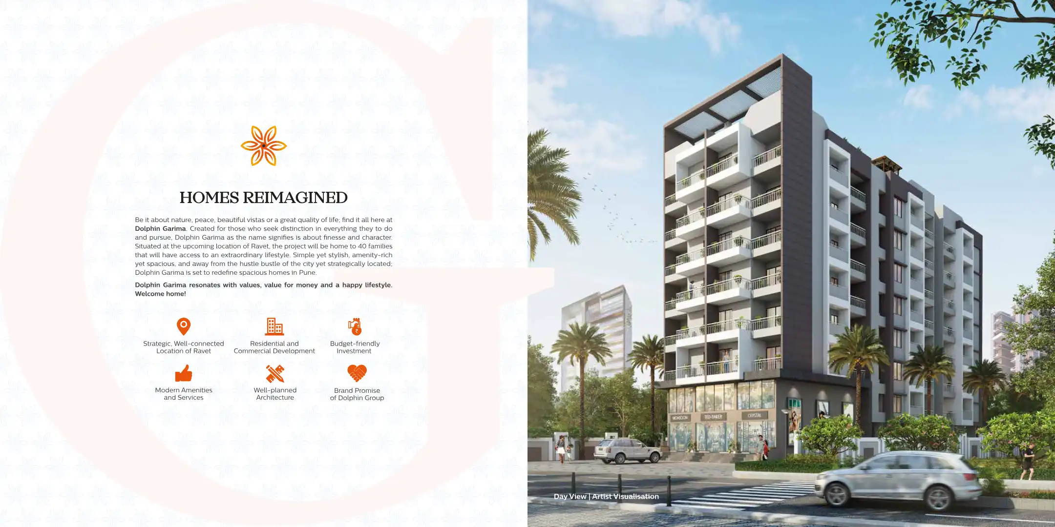 Dolphin Garima as the name signifies is about finesse and character. Situated at the upcoming location of Ravet, the project will be home to 40 families that will have access to an extraordinary lifestyle.